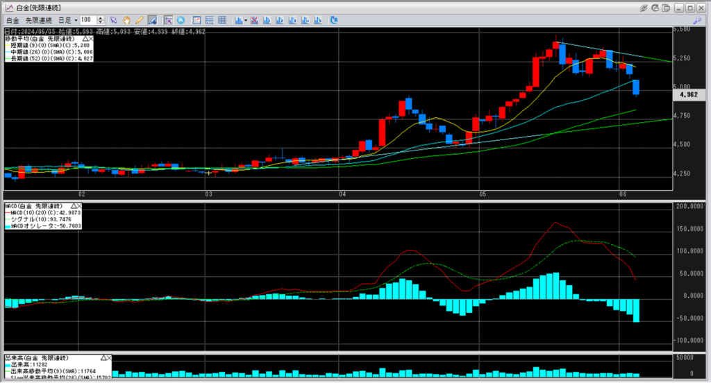 そこを大きく割り込んできています。白金価格の下落は続くのか。