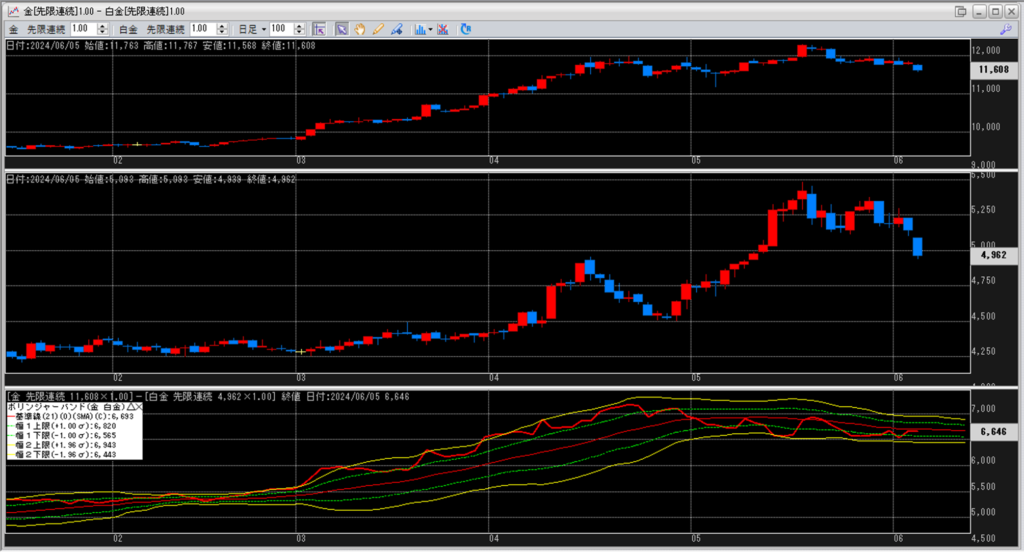 金白金の鞘をボリンジャーバンドで見ていきます。