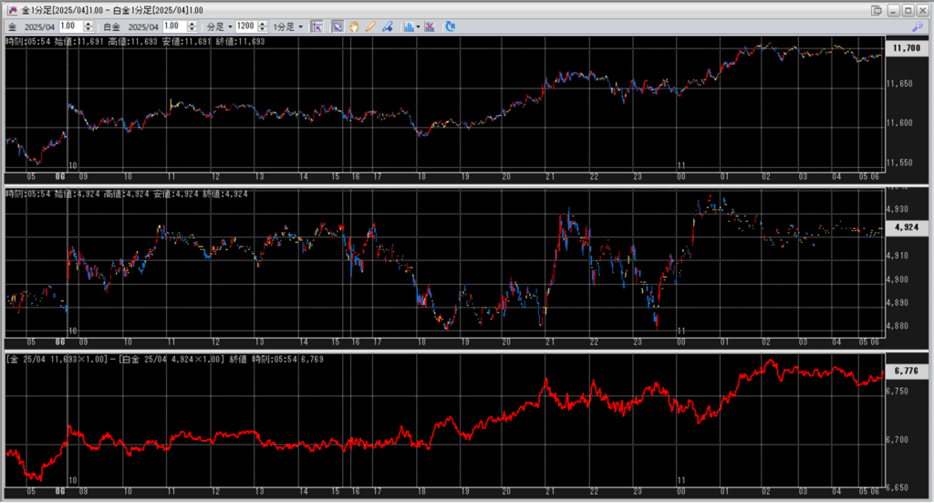下:金白金鞘(金白金の価格差 = 金1グラムの価格 - 白金1グラムの価格)