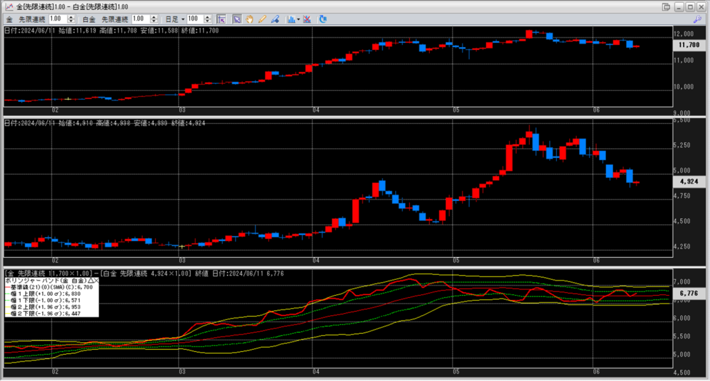 金白金の鞘をボリンジャーバンドで見ていきます。