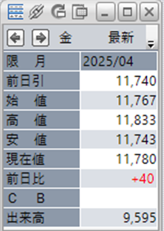 上:大阪取引所 金 2025年4月限 1分足
