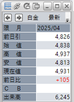 中:大阪取引所 白金 2025年4月限 1分足