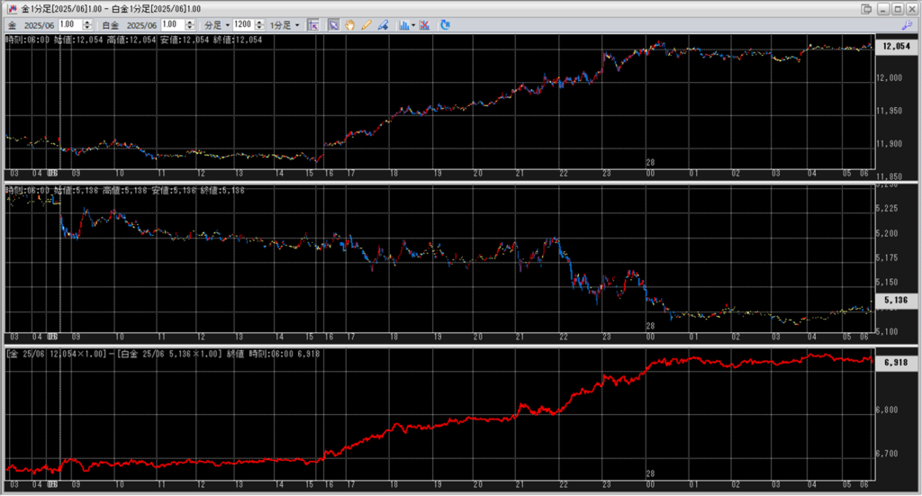 下:金白金鞘(金白金の価格差 = 金1グラムの価格 - 白金1グラムの価格)