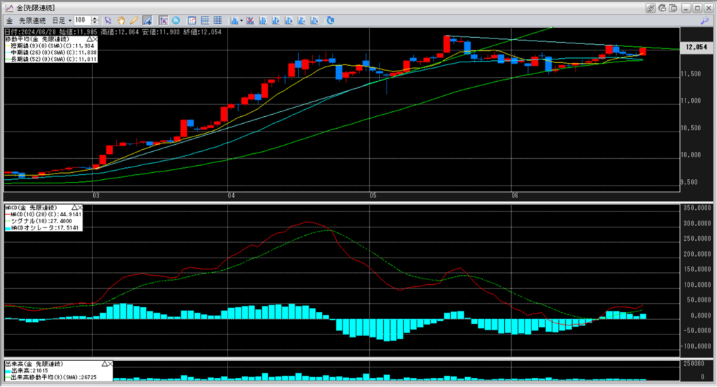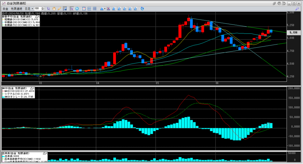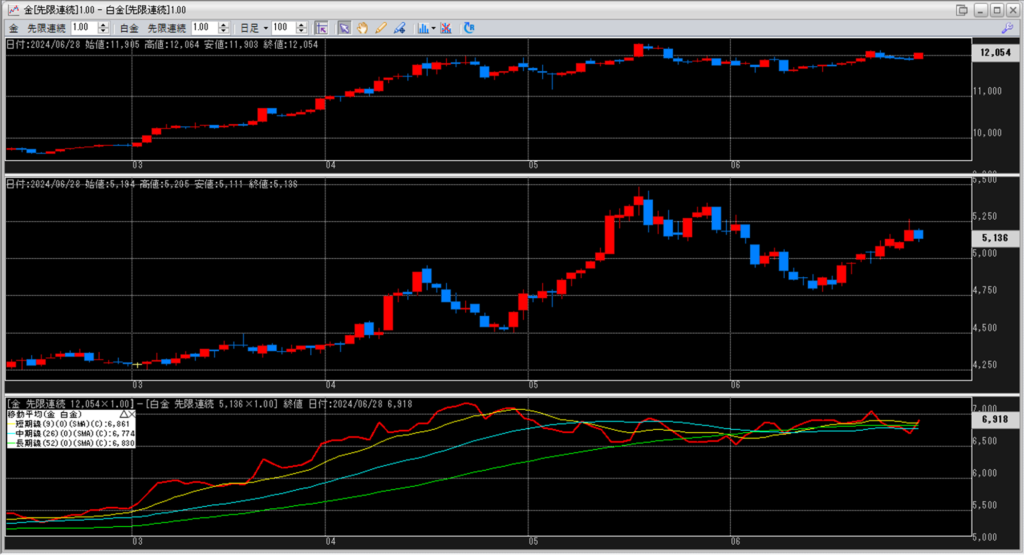 下記に金白金鞘の移動平均線のチャートを貼り付けています。