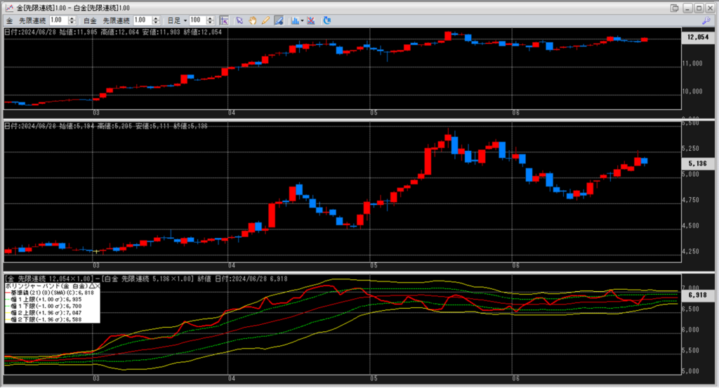 金白金の鞘をボリンジャーバンドで見ていきます。