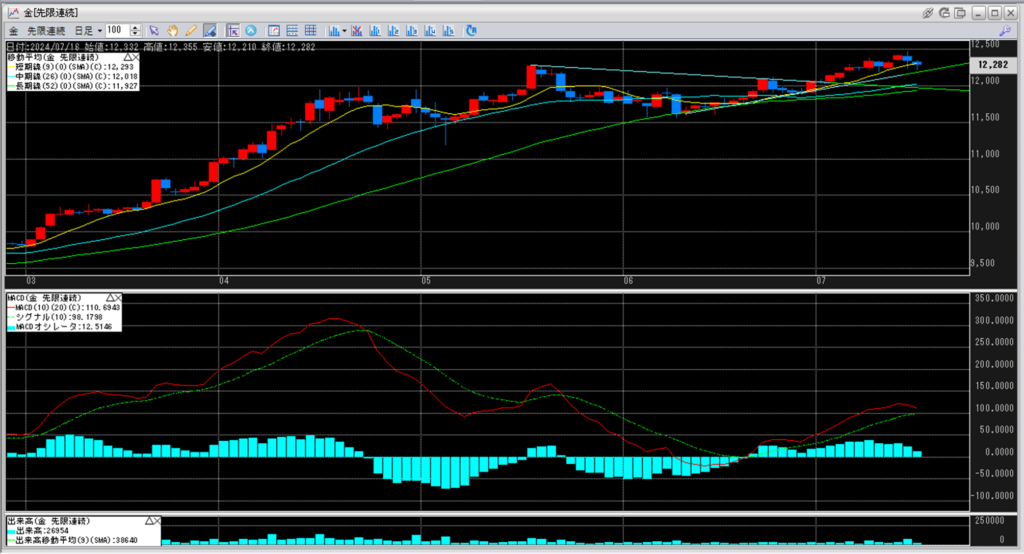 金のチャートをみると、5月半ばの当時史上最高値12,283円から