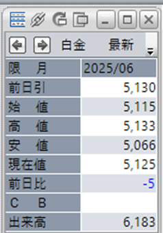 中:大阪取引所 白金 2025年6月限 1分足