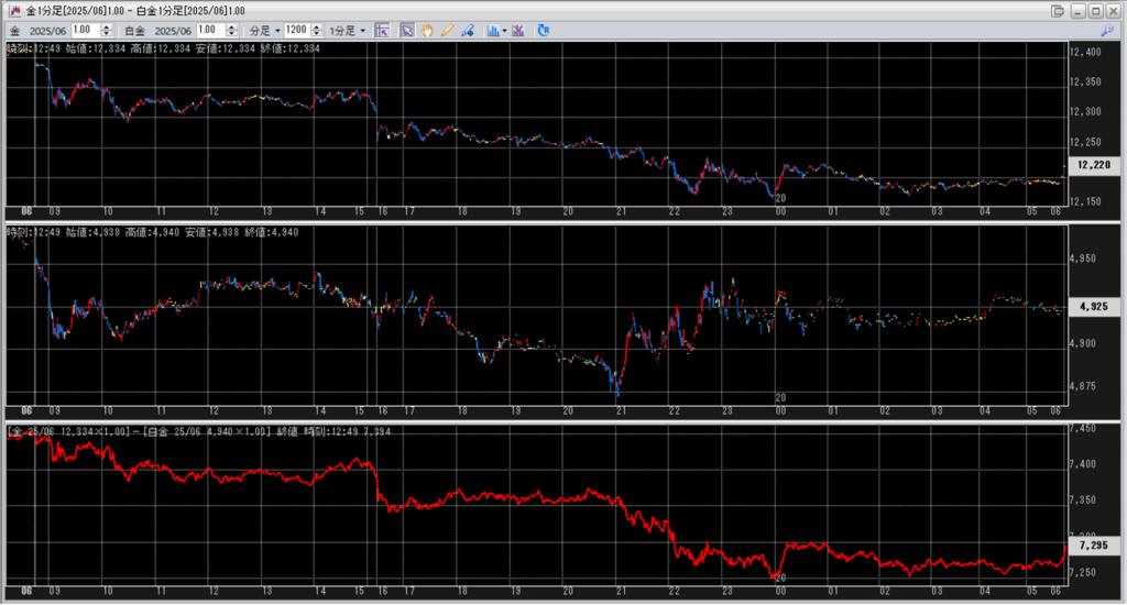 下:金白金鞘(金白金の価格差 = 金1グラムの価格 - 白金1グラムの価格)