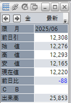 金のチャートをみると、5月半ばの当時史上最高値12,283円から