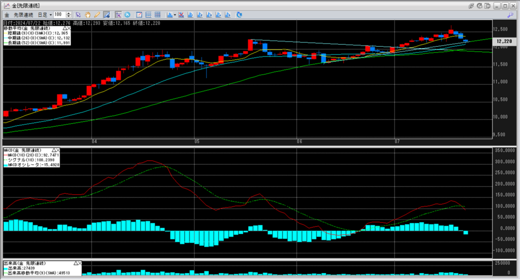 12,000円超えを維持し、下落トレンドを超え、金価格は上がってきました。