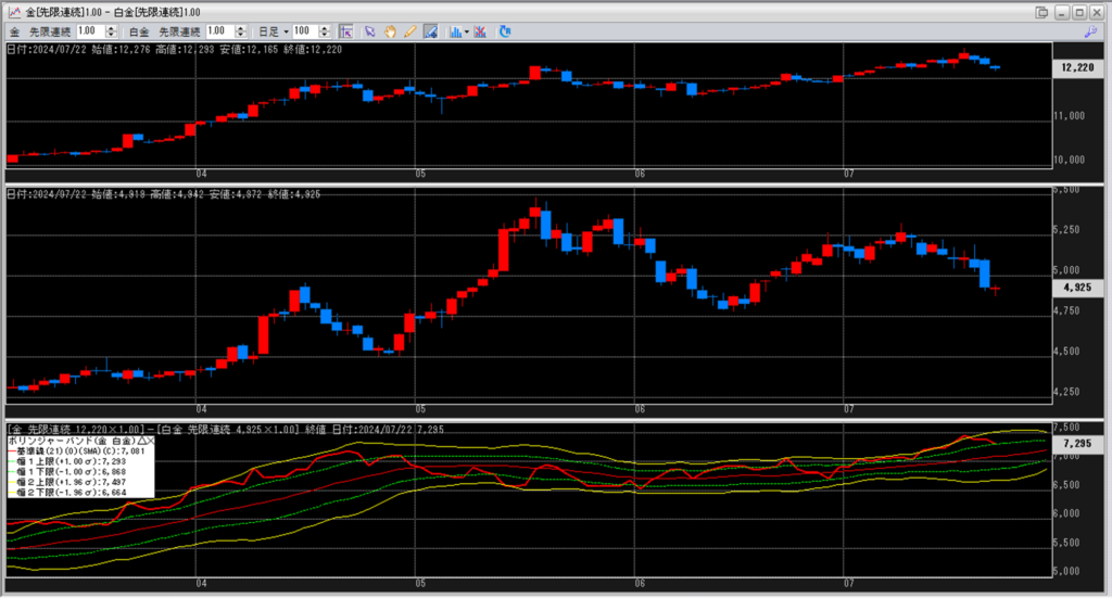 金白金の鞘をボリンジャーバンドで見ていきます。