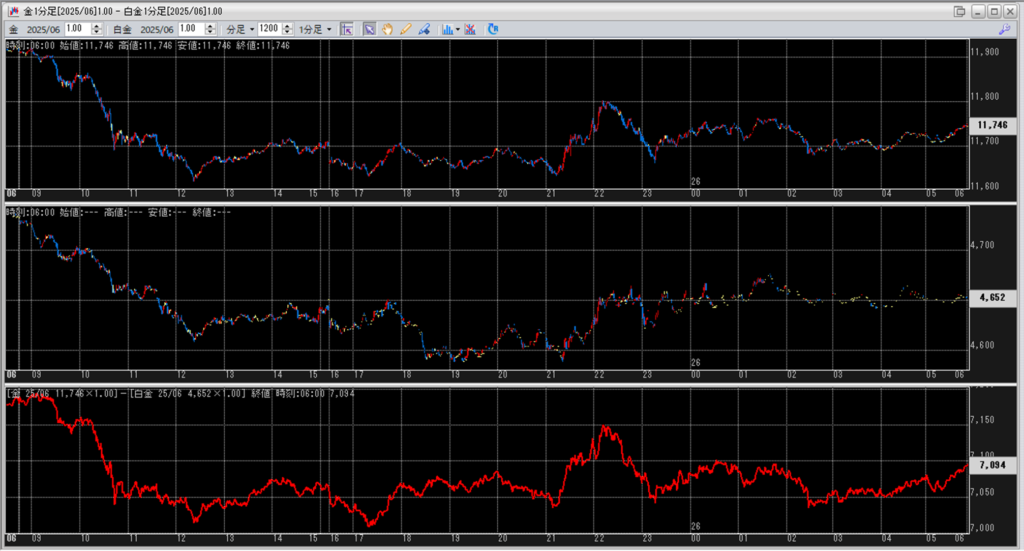 下:金白金鞘(金白金の価格差 = 金1グラムの価格 - 白金1グラムの価格)