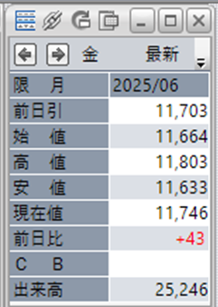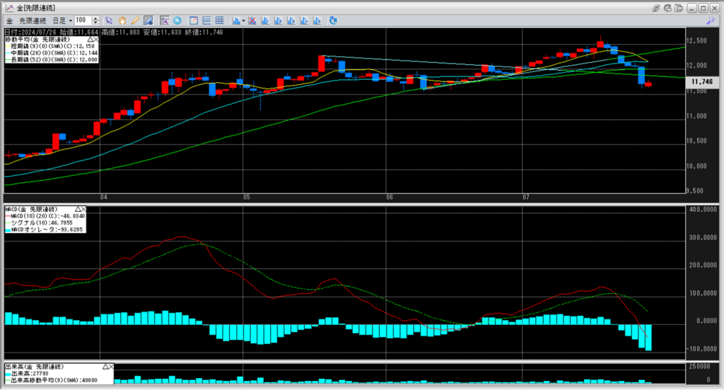 金のチャートをみると、5月半ばの当時史上最高値12,283円から