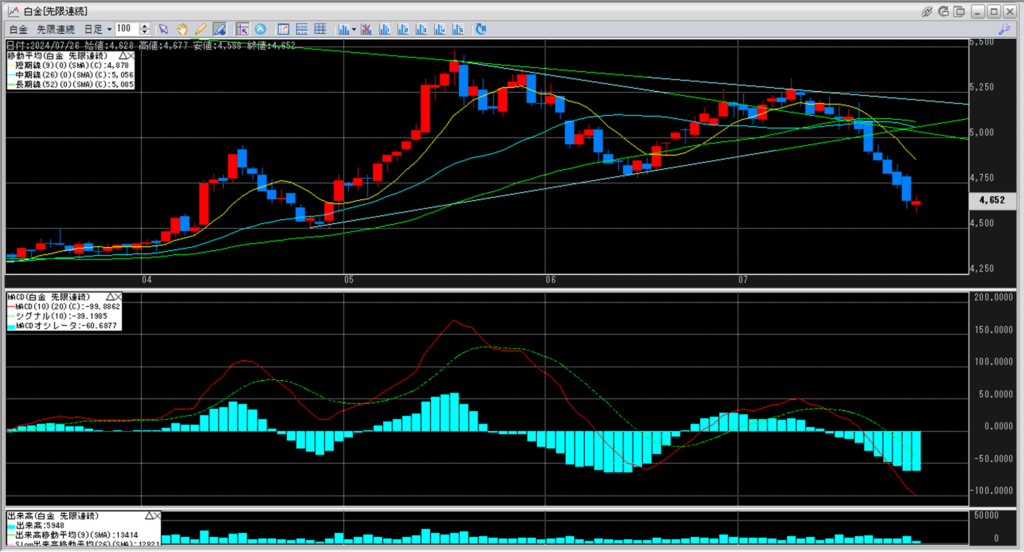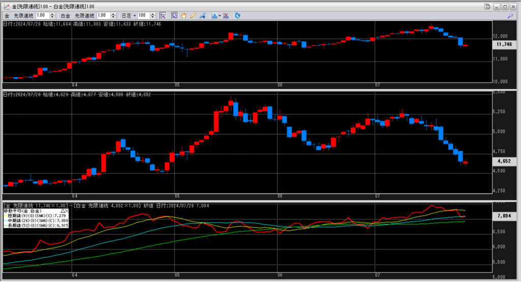 下記に金白金鞘の移動平均線のチャートを貼り付けています。