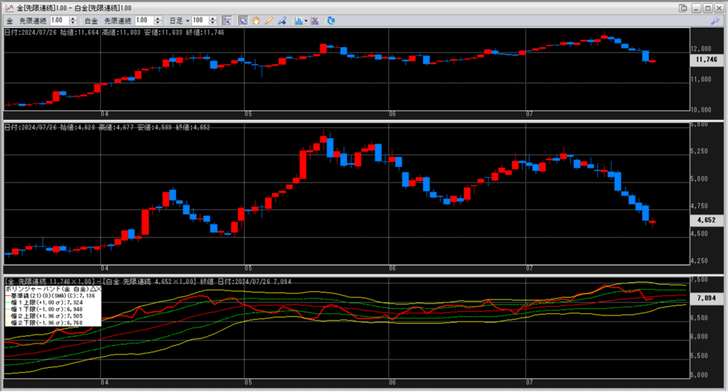 金白金の鞘をボリンジャーバンドで見ていきます。