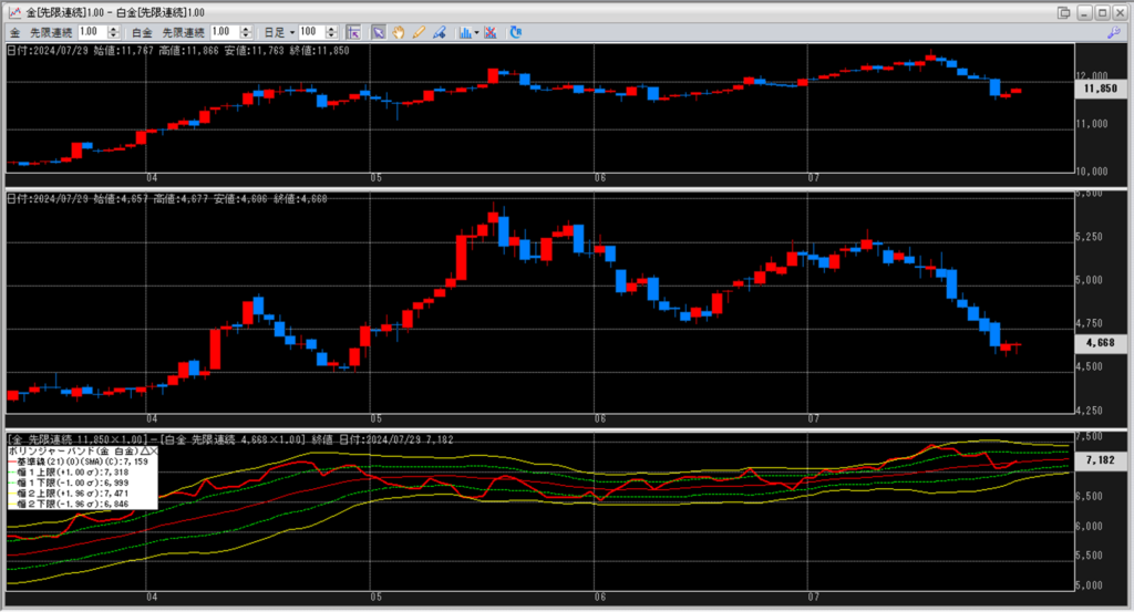 金白金の鞘をボリンジャーバンドで見ていきます。