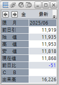 上:大阪取引所 金 2025年6月限 1分足