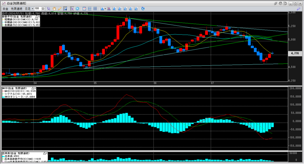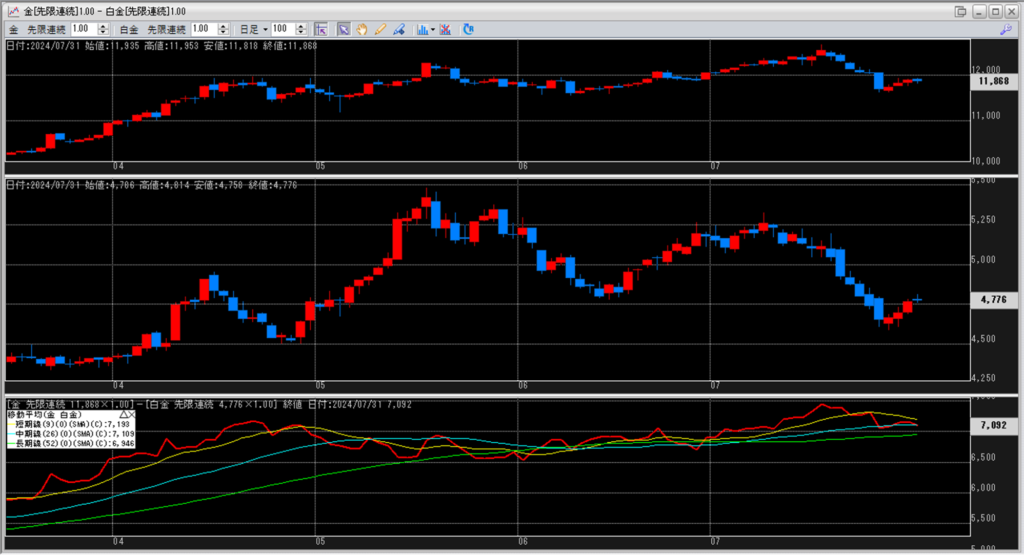 下記に金白金鞘の移動平均線のチャートを貼り付けています。