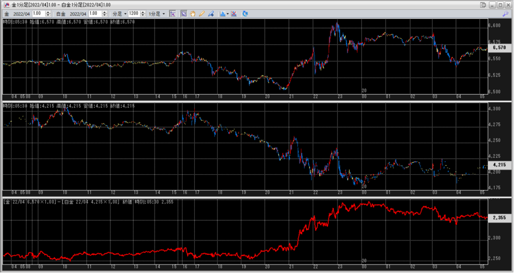 鞘拡大の仕掛け金買い1枚-白金売り2枚を増やしていきたいと思います。