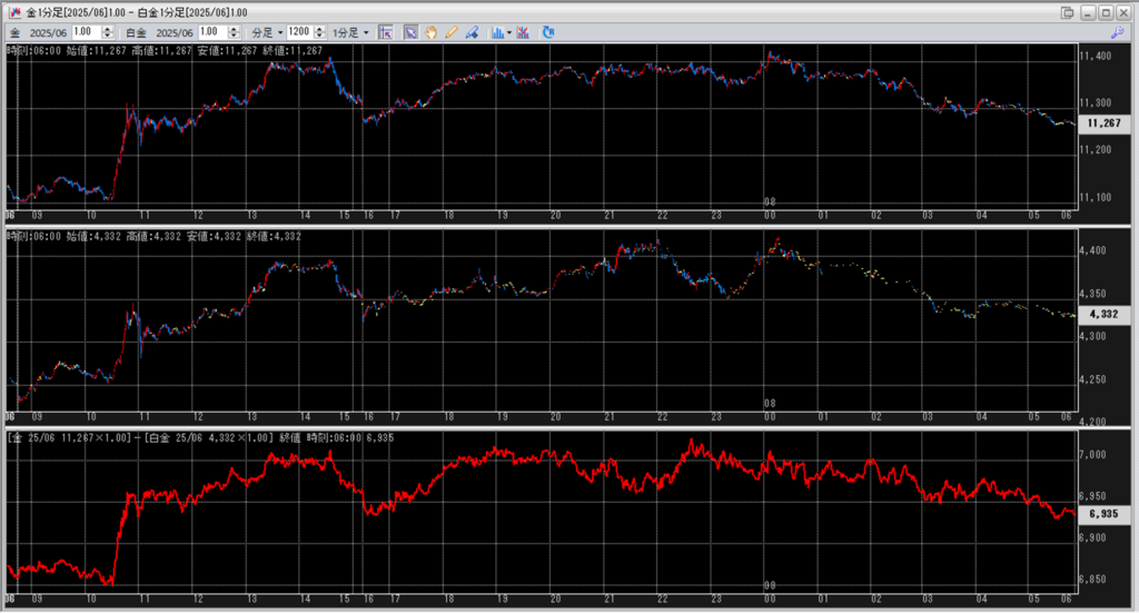 下:金白金鞘(金白金の価格差 = 金1グラムの価格 - 白金1グラムの価格)