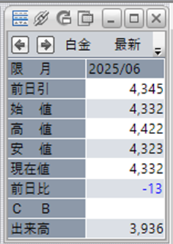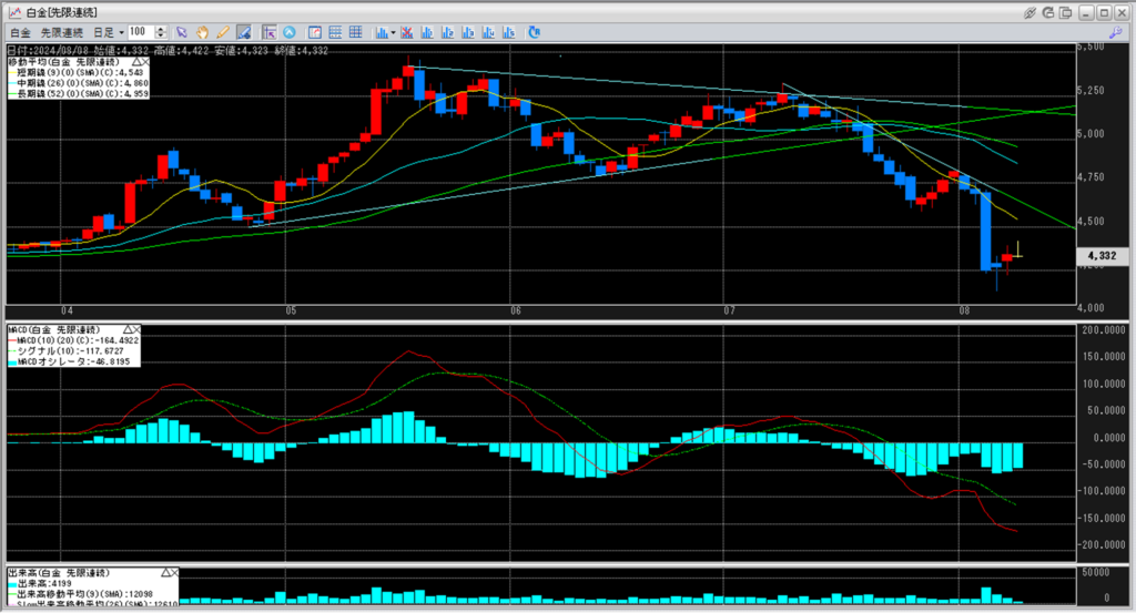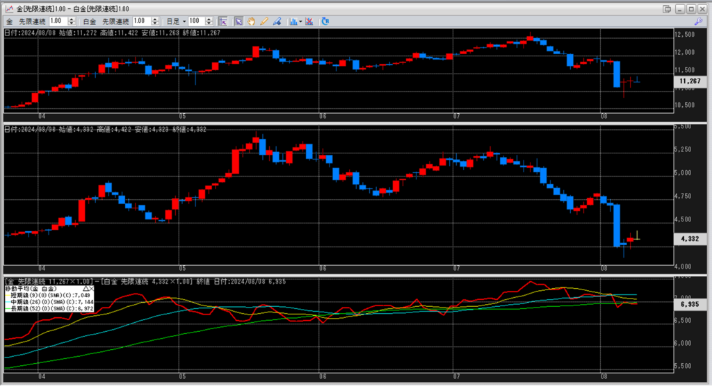 下記に金白金鞘の移動平均線のチャートを貼り付けています。