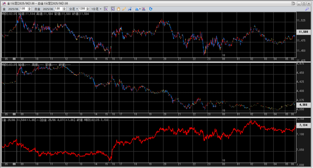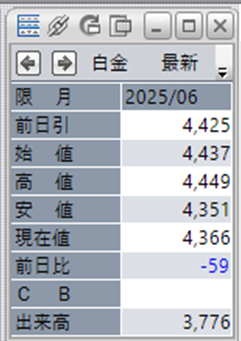 中:大阪取引所 白金 2025年6月限 1分足