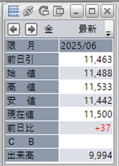 金価格は、6:00時点での終値は11,500円となっています。