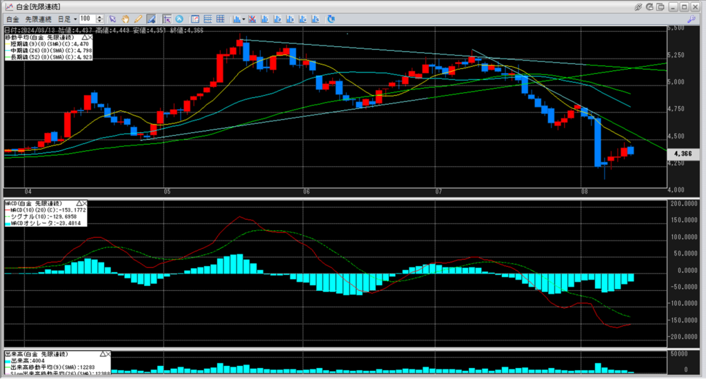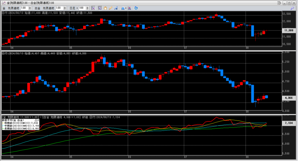 下記に金白金鞘の移動平均線のチャートを貼り付けています。