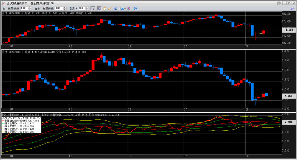 金白金の鞘をボリンジャーバンドで見ていきます。