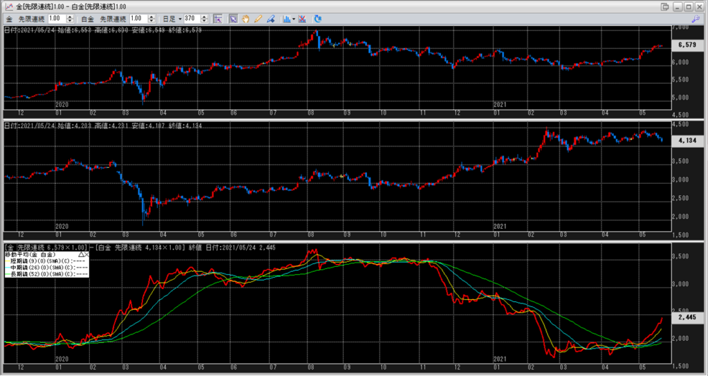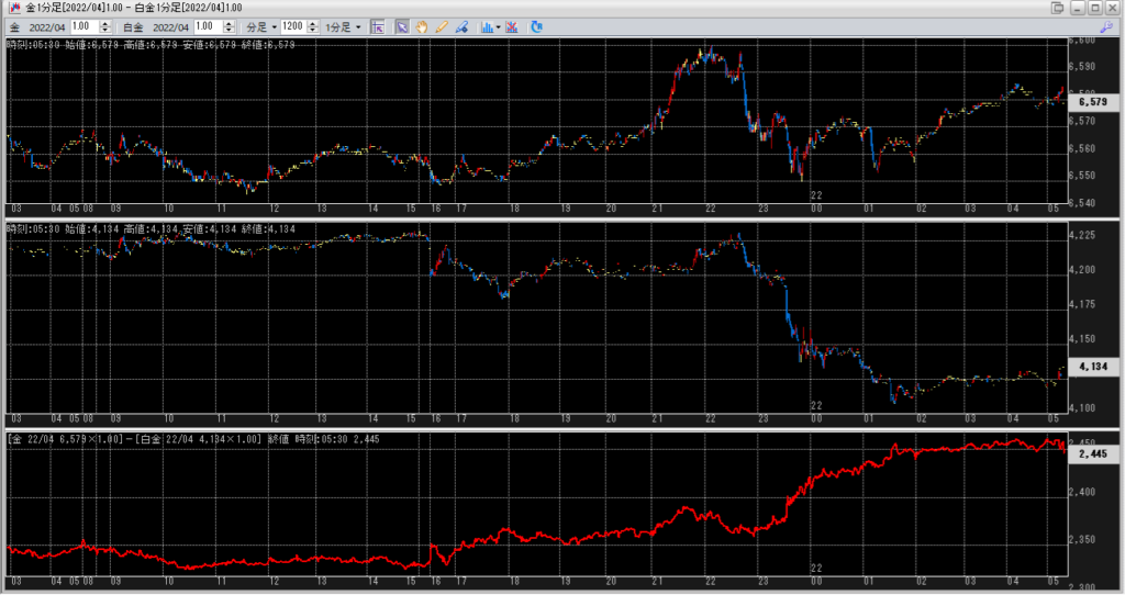鞘取りのはずなのに、金買いにも白金売りにも利益が乗っているという…
