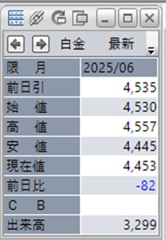 金白金鞘の市場最大値である7,448円に近づきつつあります。