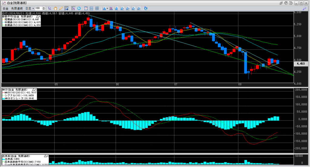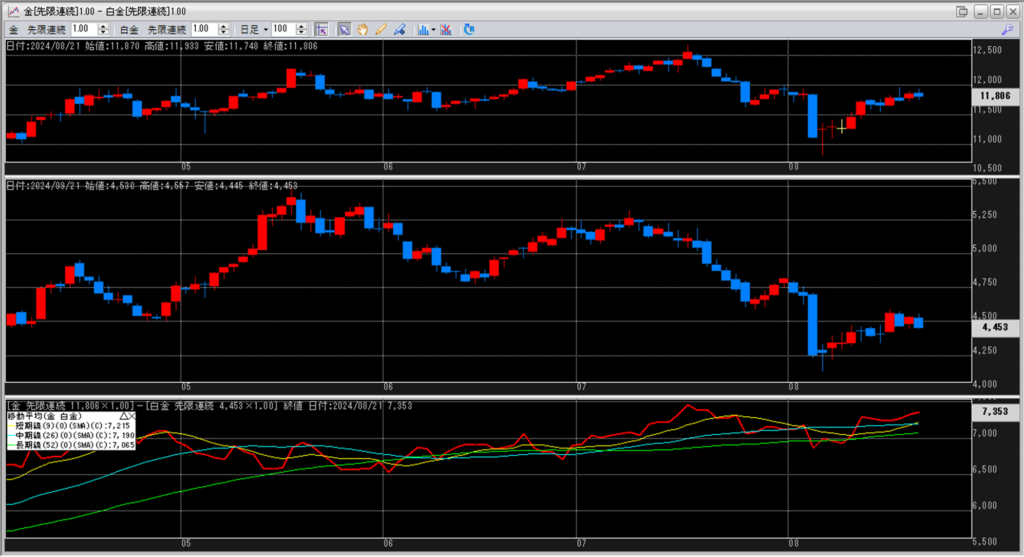 下記に金白金鞘の移動平均線のチャートを貼り付けています。