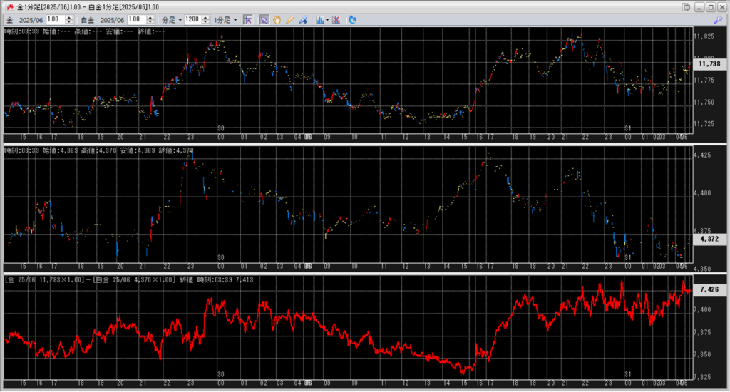 金白金鞘値動きのチャートを張り付けています。