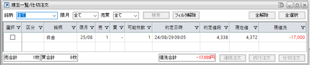 現在、白金売りを1枚、保持しています。