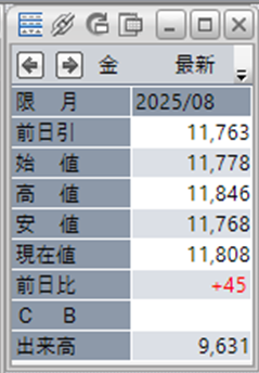 上:大阪取引所 金 2025年8月限 1分足