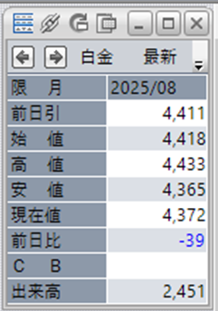 中:大阪取引所 白金 2025年8月限 1分足