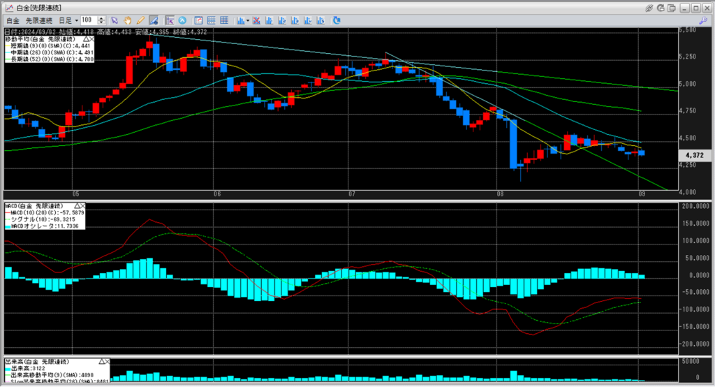 白金単体で見ると、前日比で-39円となっております。