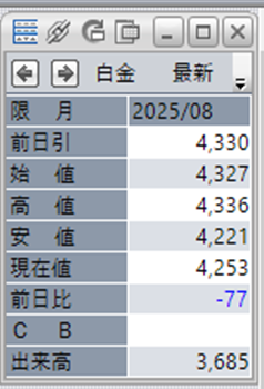 為替が円高に、海外の白金価格も下がり、それなりに白金価格が下がりました。