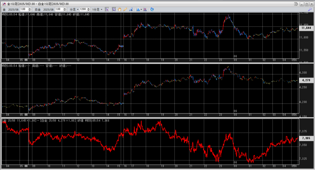 下:金白金鞘(金白金の価格差 = 金1グラムの価格 - 白金1グラムの価格)