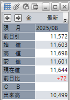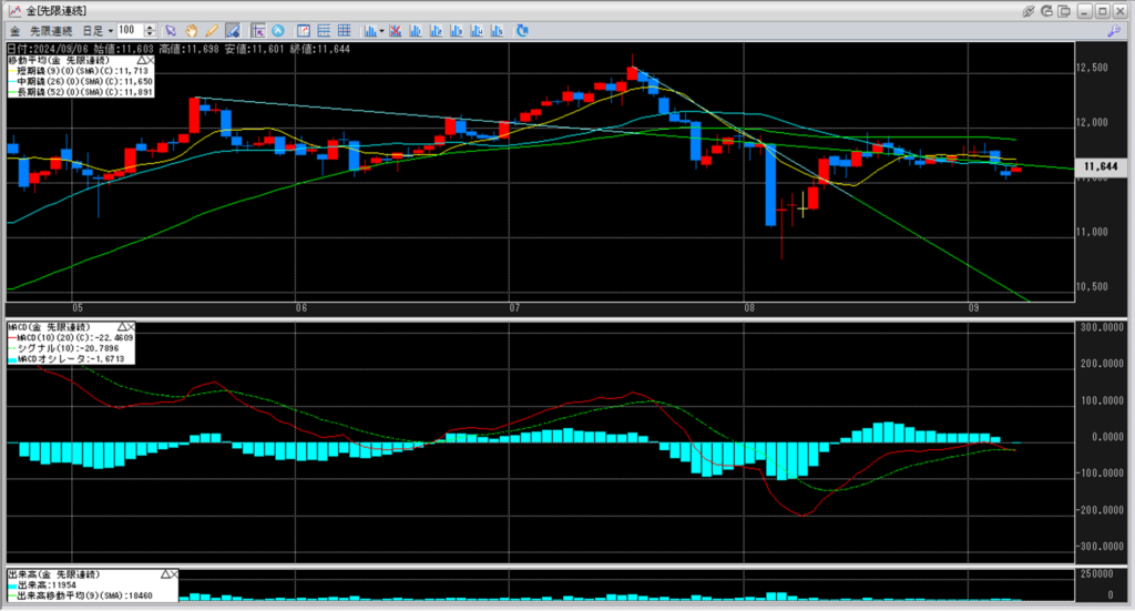 金のチャートをみると、5月半ばの当時史上最高値12,283円から