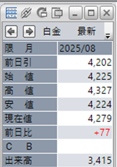 7月上旬に高値を付けたところから、白金価格の下落が続いてきました。