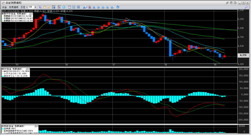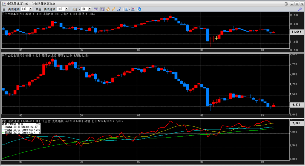 下記に金白金鞘の移動平均線のチャートを貼り付けています。