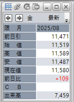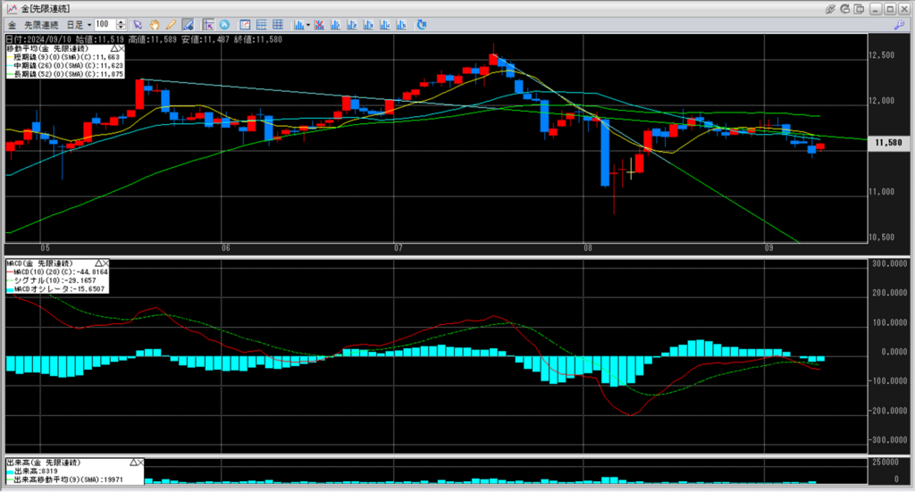 金のチャートをみると、5月半ばの当時史上最高値12,283円から
