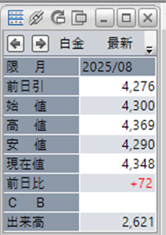 7月上旬に高値を付けたところから、白金価格の下落が続いてきました。