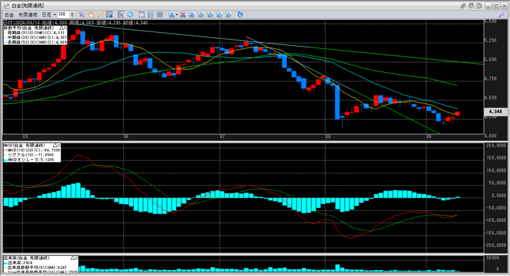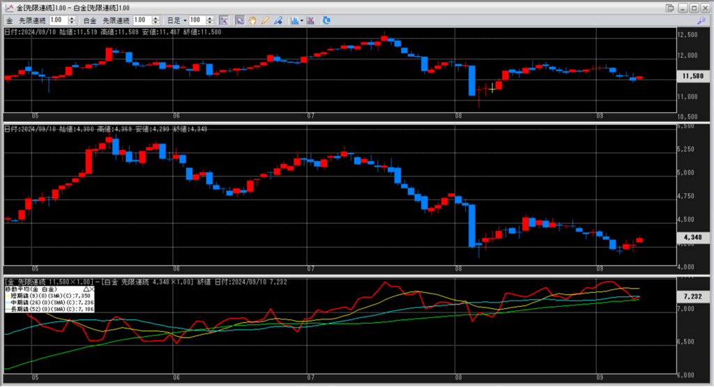 下記に金白金鞘の移動平均線のチャートを貼り付けています。