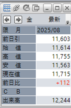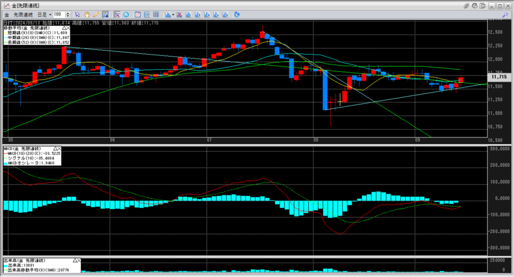 金のチャートをみると、5月半ばの当時史上最高値12,283円から