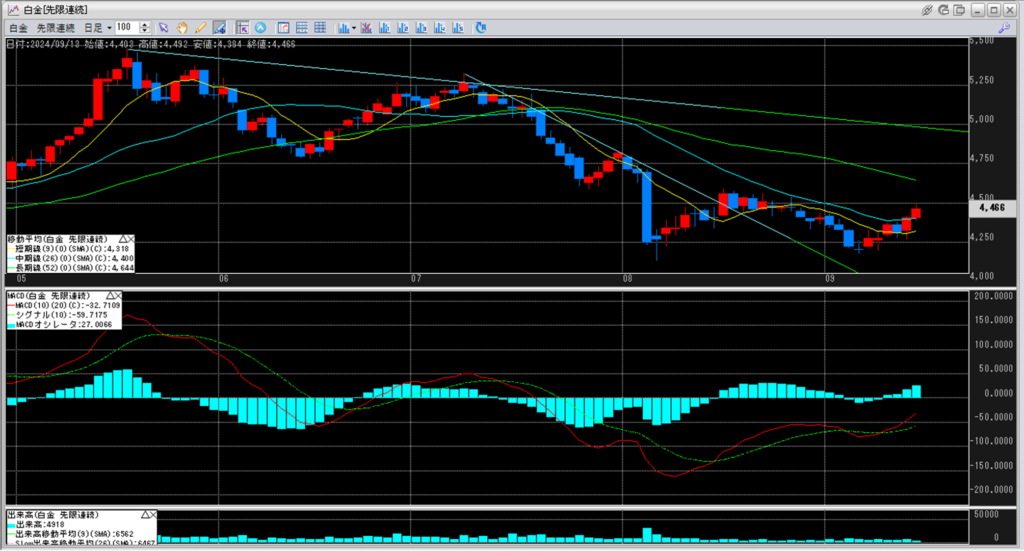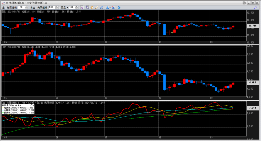 下記に金白金鞘の移動平均線のチャートを貼り付けています。
