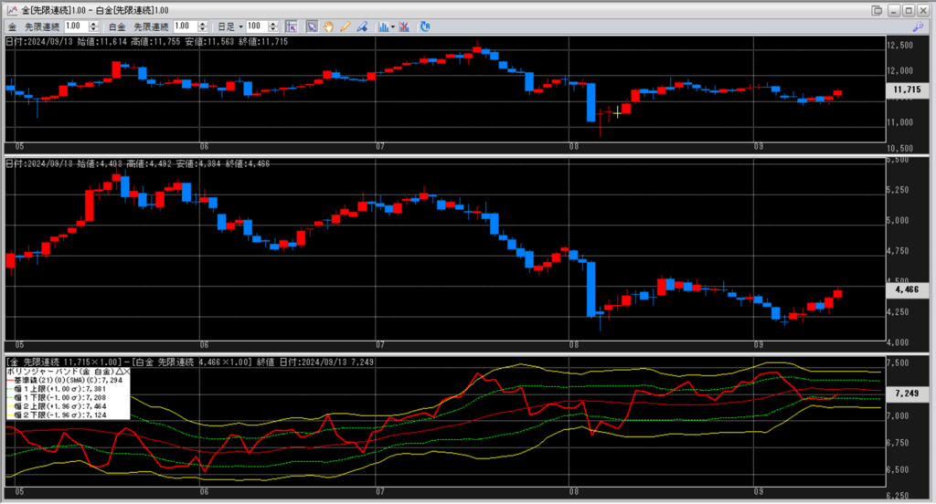 金白金の鞘をボリンジャーバンドで見ていきます。