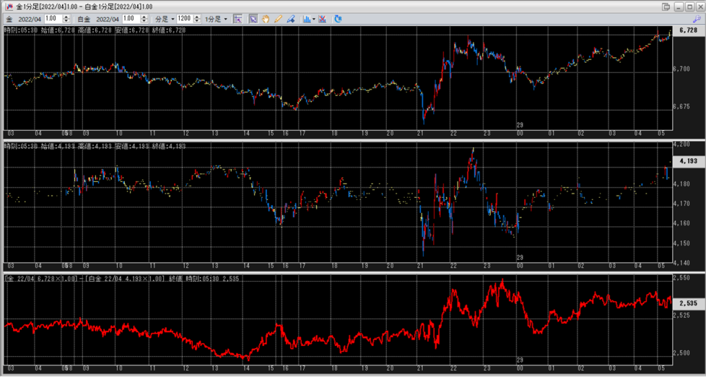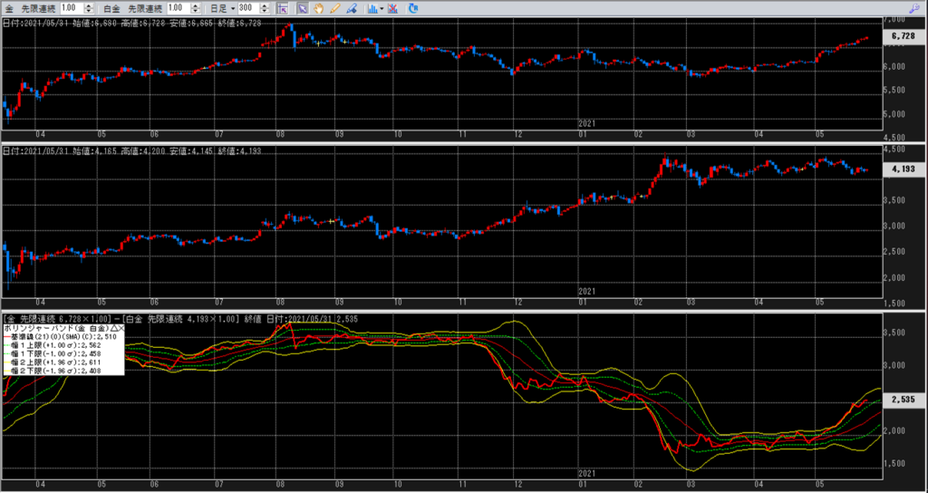 その時は、鞘拡大の仕掛けである金買い-白金売りを増やします。