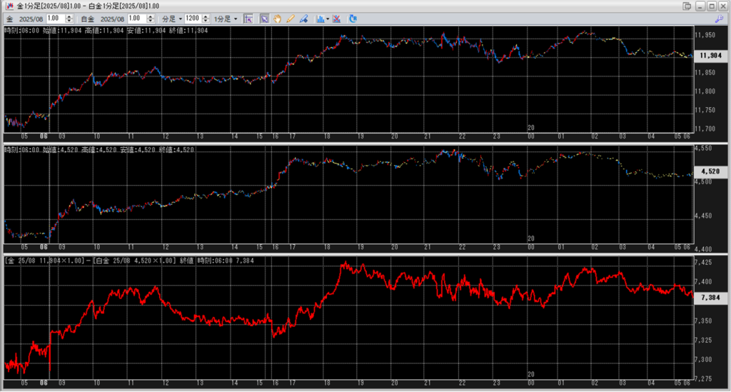 下:金白金鞘(金白金の価格差 = 金1グラムの価格 - 白金1グラムの価格)